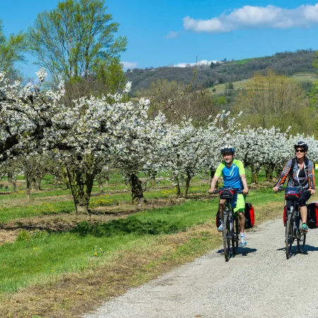 This cycling tour starts in the Gallo-Roman city of Vienne and keeps on along ViaRhôna, through the world-famous wine region of Côtes-du-Rhôna till Valence. A great family cycling holiday or gourmet cycling holiday!
