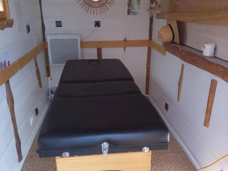 Just a few steps from the barge, enjoy a swimming pool with sun loungers — the perfect extension of your wellness break. Onboard, a wellness area is also available: treat yourself to a relaxing massage, by reservation (extra cost, bookable through Terre d’Argence Réservation – "Luma Shiatsu" service).