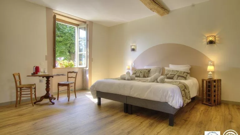 On the ground floor, the Hirondelle room with a view of two majestic plane trees is accessible to people with disabilities. It offers a quiet cocoon where you relax, recharge your batteries and reconnect with nature. Bedding, shower, furniture and toilets are designed to offer complete autonomy.