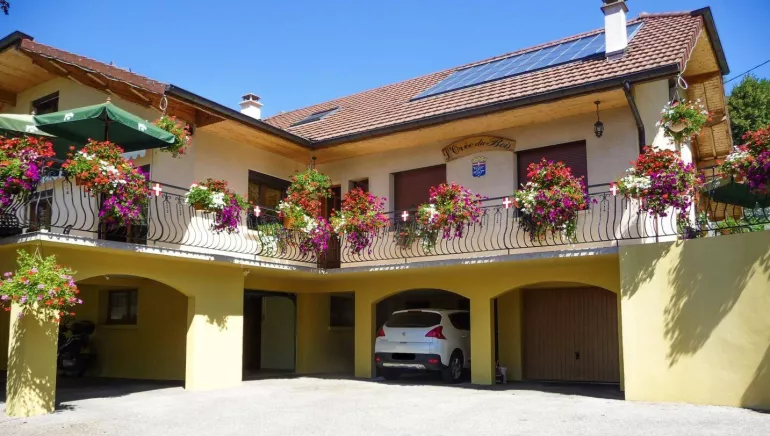 4 chambres avec s. d'eau privative . 3 ch. au 1er étage (1 lit 2 p. / 2 lits 1 p. / 1 lit 2 p.). Coin salon TV/DVD. Cuisine à disposition. Abri voitures. Terrain clos. Lac Bourget 11 km, Thermes Aix les Bains 20 km. L'hébergement a été primé au concours départemental du fleurissement en 2015. Salle de réception disponible sur réservation pour marquer un évènement
