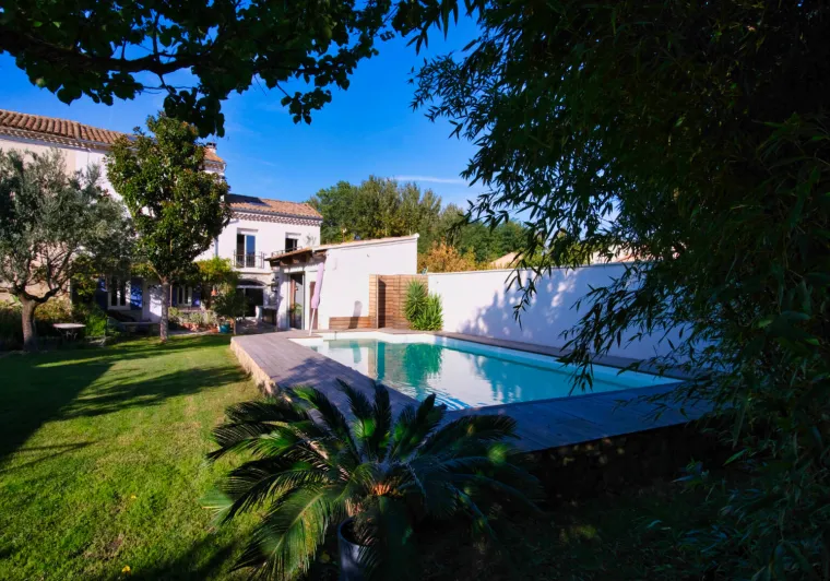 This typical Barthelasse island house is on the 1st floor and comprises an air-conditioned living room shared with the owner, with kitchen, relaxation area and dining area.The shared swimming pool (10x4m, progressive depth from 1.20m to 1.50m) is alarm-protected and open from early June to late September.