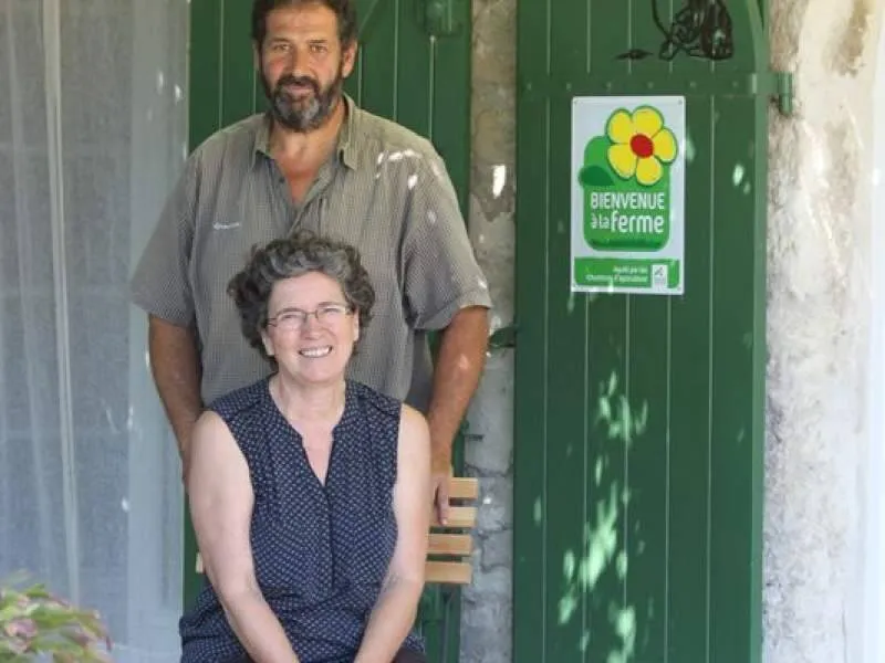 Accueil cyclistes et marcheurs. Vente des produits de la ferme cultivés en bio, et transformés sur place (jus de fruits abricots, pommes, coing, poire, groseille, confitures, purées, etc...), élevage de volailles et de moutons et de chèvres etc... fromages fermiers...Piscine entourée de vergers avec coin cuisine d'été.