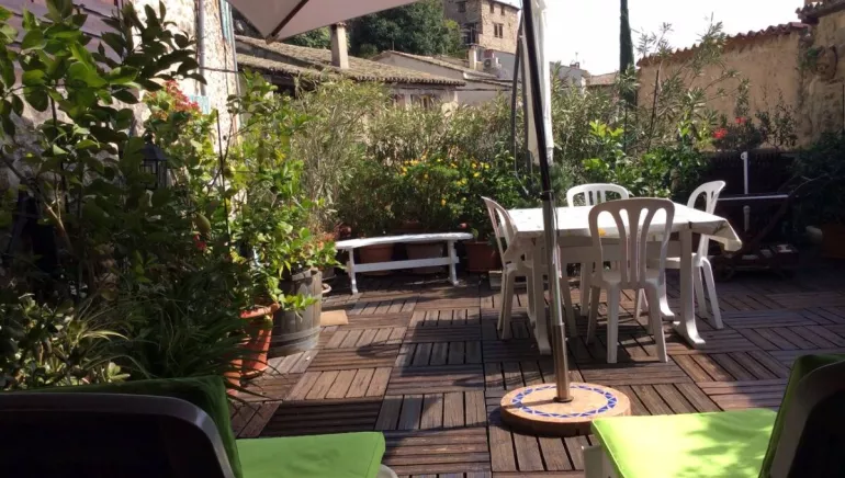 Chambre de 21m² avec cabinet de toilettes douche WC. Télévision, Internet et entrée indépendante. Grande terrasse avec salon de jardin et coin lecture.