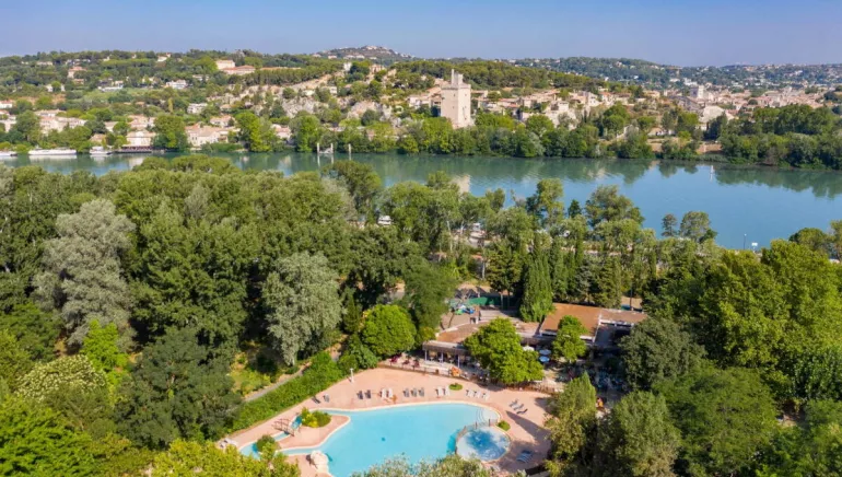 Situated on the unspoilt island of Barthelasse, this 4-star campsite offers a breathtaking view of the Palais des Papes and the famous Pont d'Avignon.