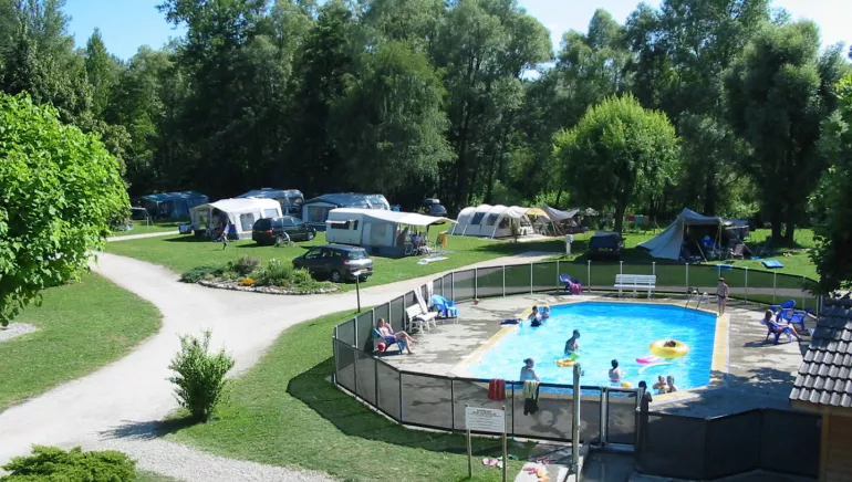 The sites, partially shaded, are above the Guiers river or in the center of the camping, where we find playground, ping-pong table, tennis court, swimming pool and mini-golf course.