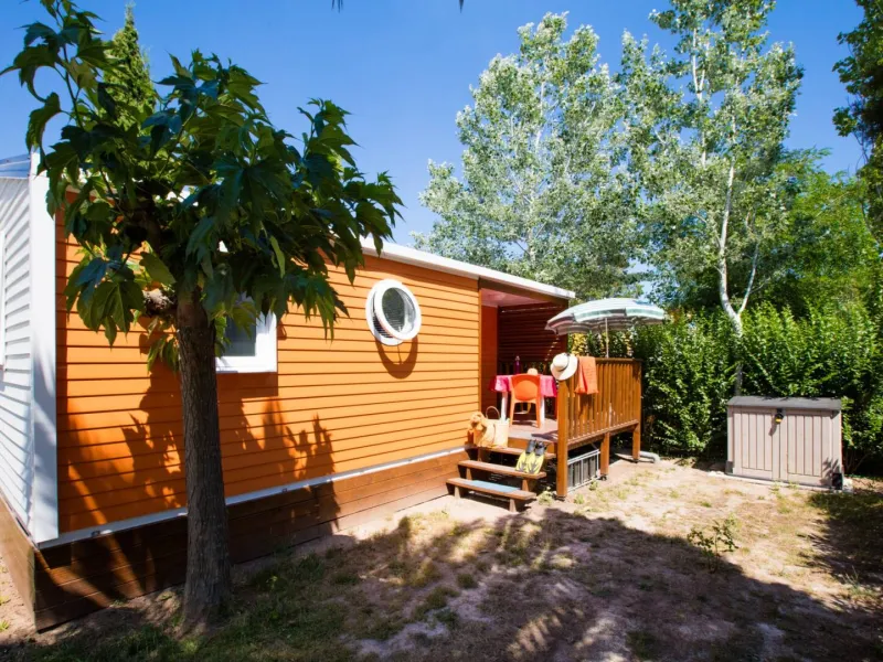 Campsite located on the banks of the Hérault River (free landing stage), in a peaceful setting. Swimming pool and Aquapark heated in spring and autumn, paddling pool, jacuzzi, 2 play areas, table tennis, multi-sports pitch, gym. Entertainment 2 times a week in high season. Beach and fishing port 2 km away. Food service, bar. Washbasins in cabins with hot water, washing machines, hot water for dishes, camping-car dumping area reserved for our customers.165 electrified, hedged pitches, including 50 "Grand Confort". WiFi Internet access at a charge on all pitches and in all mobile homes.