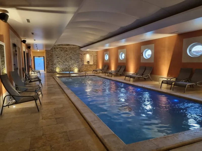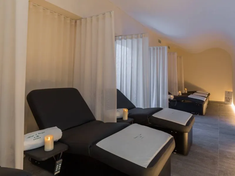 The highlight of this privileged location? A marvellous Spa featuring indoor pool, Jacuzzi, sauna, steam room, chromotherapy shower, fitness room, hydromassage beds, double and individual massage cabins, private Jacuzzi, Hormeta beauty treatments, herbal tea room and relaxation room.