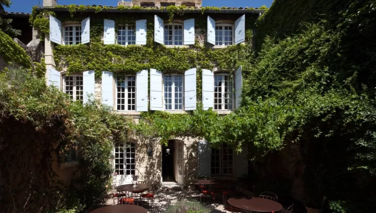 Formerly a peaceful home from the 16th century, this charming hotel has 22 rooms,,all different. A stone staircase winds upstairs and overlooks the Italian-style courtyard. The hotel sometimes displays art exhibits, showing paintings,