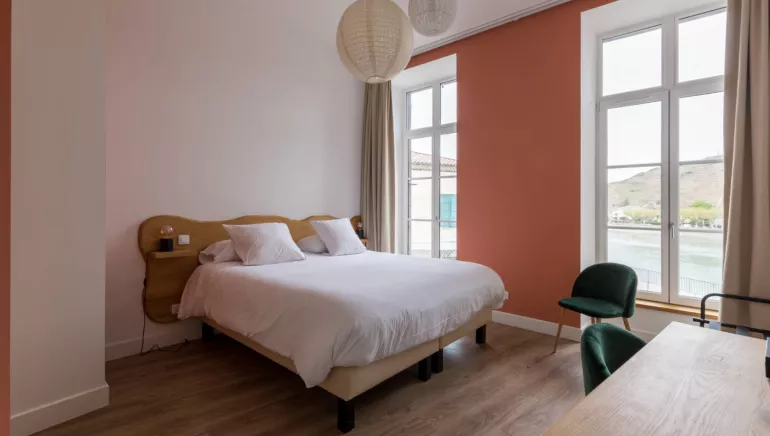 Hotel Le Château is located in the center of Tournon sur Rhône, with a unique view of the Côteaux de l'Hermitage and the Marc Seguin footbridge over the Rhône.