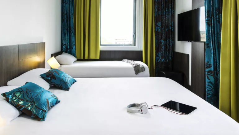 Our new designer hotel is located in the heart of Lyon's business district and a stone's throw from the historic city centre. Ideal for business or pleasure trips, you'll be able to take advantage of our restaurant area devoted to fresh products and conviviality. Our rooms are all soundproofed and air conditioned with a modern atmosphere, perfect whether you're on your own or with the whole family.