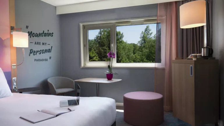 Come and discover the "Privilège" rooms: bed with mattress topper, memory foam pillows, bathrobe, slippers, Nespresso coffee machine, free mini bar soft drinks. The LA YOURTE restaurant, with its poolside terrace, welcomes you 7 days a week and serves home-style brasserie cuisine. To facilitate your arrival, our large, private, closed and free parking lot is at your disposal.