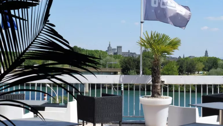 Deck provides astounding views over Avignon and Mont Ventoux.