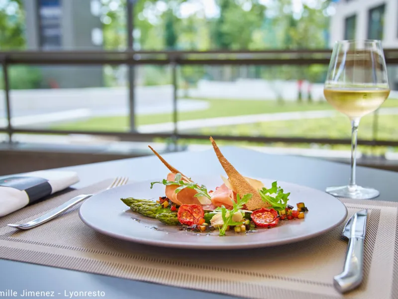 For lunch or dinner, the hotel's Tibone & Dorade restaurant offers cuisine cooked in a Josper® oven, which enhances the flavors of grilled meats and fish thanks to the wood used during cooking. A healthy and delicious menu to enjoy in the restaurant's leafy setting or on the terrace in fine weather.