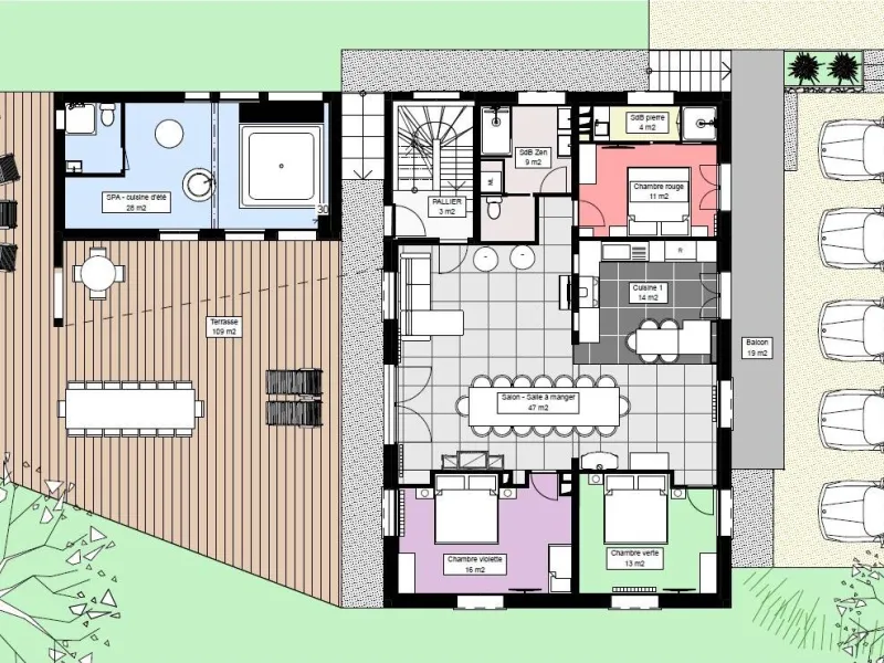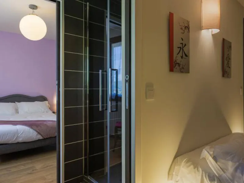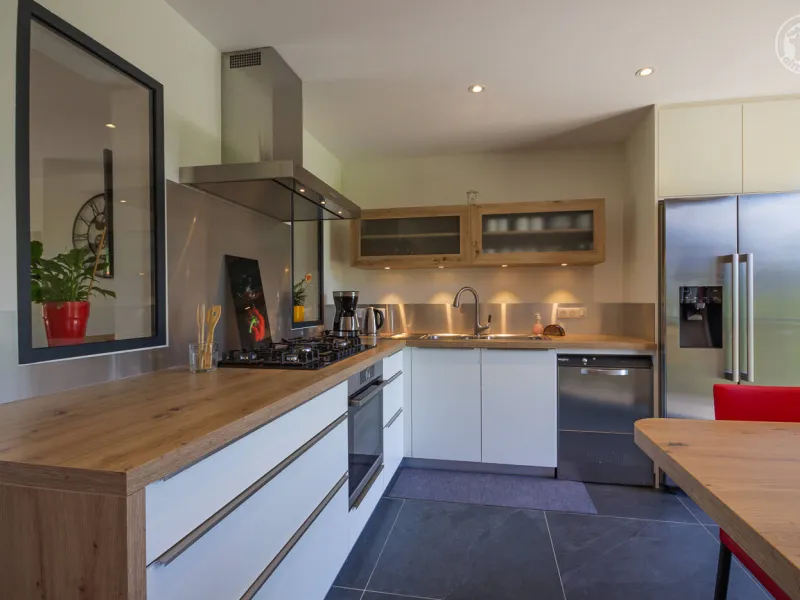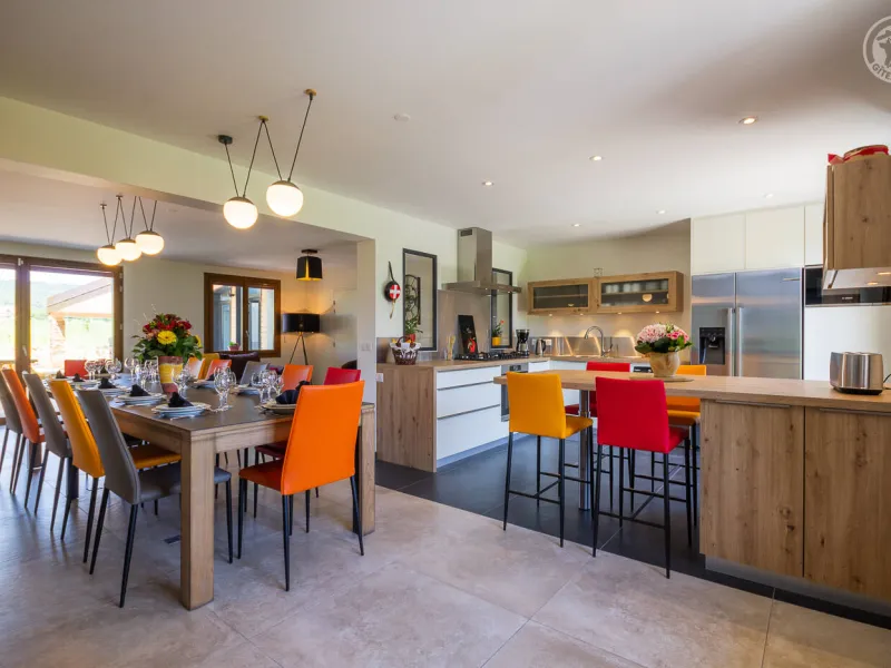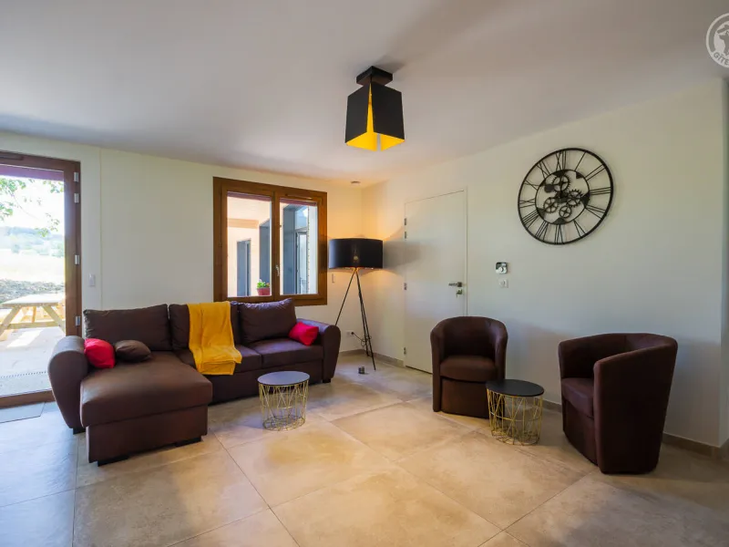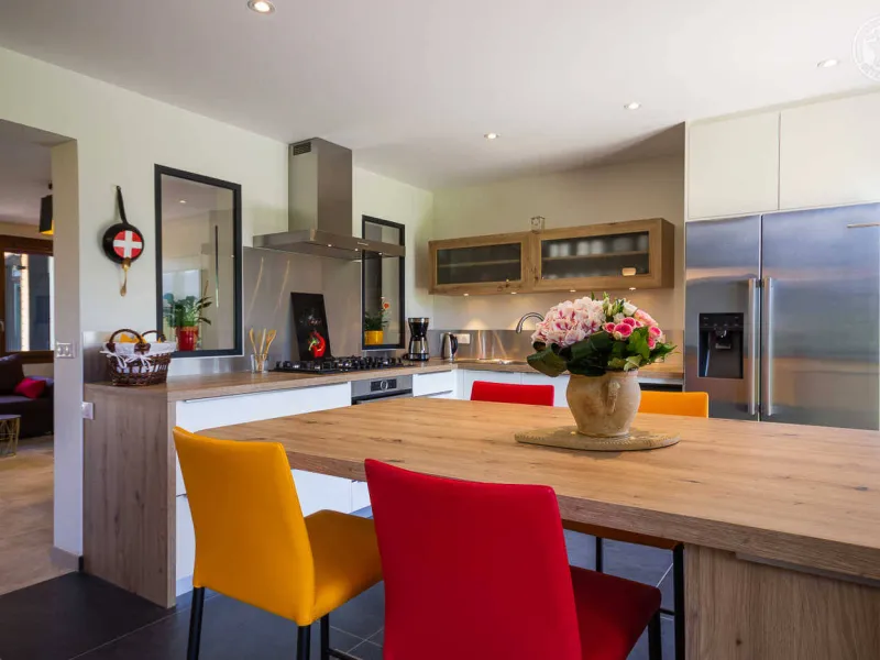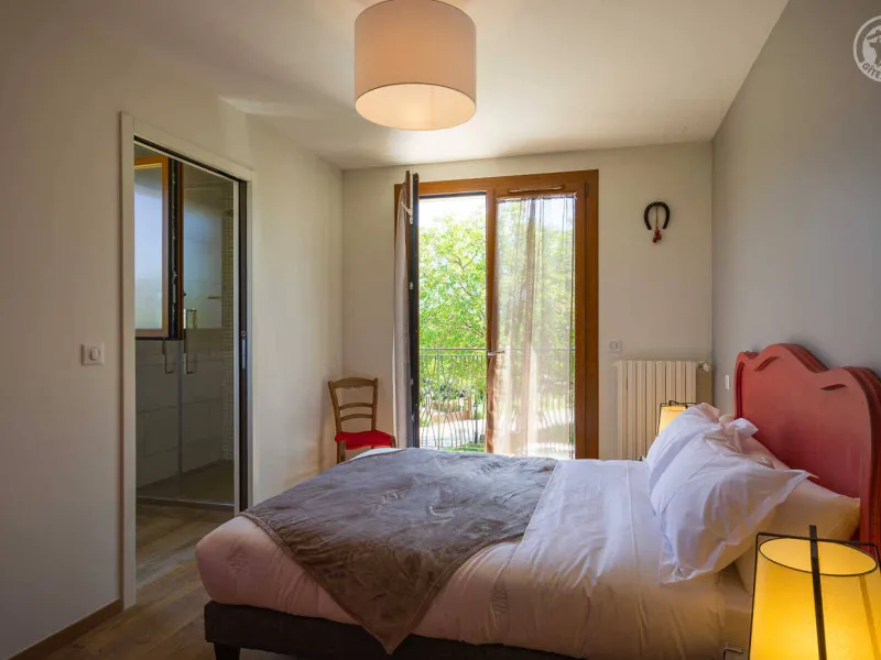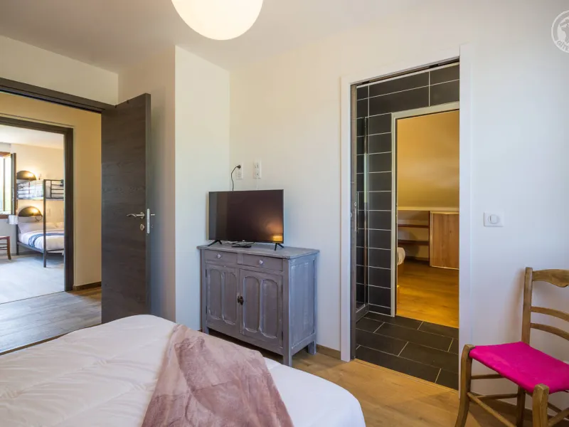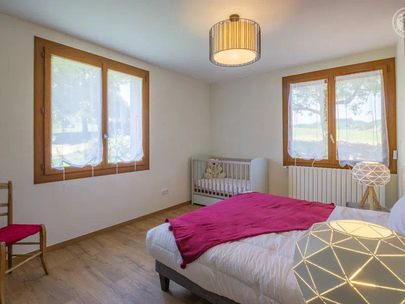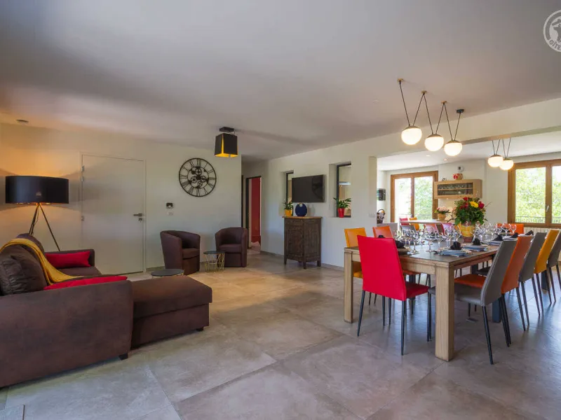 In the heart of a country village, this renovated family house has preserved its charm while adopting contemporary comfort, with sobriety and elegance. The large terrace with plancha and spa invites you to moments of relaxation and conviviality. Like paintings, the bedroom windows offer a breathtaking view of the landscape. A second living room with a kitchenette is an ideal place for festive moments around billiards and table football. Everything is included, sheets and linens; the beds are made on arrival. Private parking for 4 cars.Detached house on 3 levels comprising on the ground floor: an entrance with laundry room and bicycle storage. 1st floor: kitchen-living room, pellet stove (automatic recharging), Bluetooth speaker, 3 bedrooms including 1 with private bathroom (1 double bed / 2 double beds 160 x 200 and a baby cot ), bathroom with WC (accessible for people with reduced mobility). 2nd floor: a living room with kitchenette, with billiards and table football, connected TV, wood stove, 3 bedrooms, 2 of which have a shared bathroom (2 double beds / 2 double bunk beds, 1 single bed), one bathroom (2 sinks) with WC, separate WC. 2 balconies. Land. Well-being area (7-seater sauna, shower and WC) outside the cottage. 16 m² bicycle storage room.