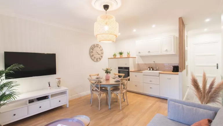 Lovely City Break accommodation with character, totally renovated and located Cours Vitton at the heart of the 3rd district of Lyon. It is situated on 1st floor of ancient building, near shops and public transport (Part-Dieu railway station can be reached within 15 minutes by tram which stops 350m away). Warm welcome assured by owners, Laurie & Stéphane. Very light interior, modern décor. 1st floor (3 steps from entrance + lift for access) : entrance hall, living room facing South (kitchen area, dining area, lounge area with large screen TV, Netflix access & WIFI with fiber-optic Internet), 2 peaceful bedrooms located courtyard side (180 x 200 cm double bed in each). Shower room. Separate Wc. Travel cots on request. Bed linen, towels & hospitality products supplied. Free parking on the street. Velo'v station down the building. Square with play area for children 250m away. Edouard Herriot Hospital & metro stop Grange Blanche (D line) 1.6 km on foot. Racetrack of Parilly 5 km. Exhibition Center 8 km. Groupama Stadium/ OL Park 9 km.