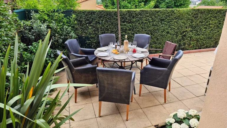 Terrasse extérieure de 50 m2 de plein pied sans vis à vis. Chambre suite parentale avec un lit (160x190) avec salle d'eau séparée par une verrière et stores occultants. Chambre d'amis (lit 140x180) avec coin bureau. Dégagement avec dressing penderie dans le salon, grand dressing de rangement et placard buanderie.