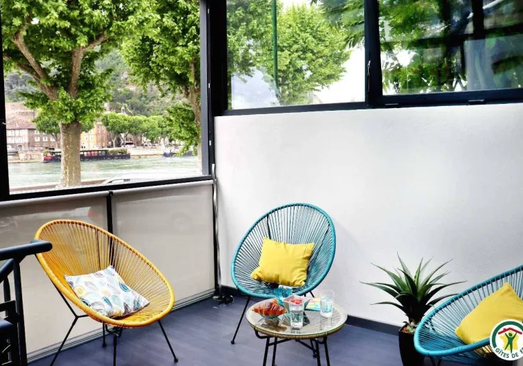 Vous pourrez la parcourir à pied ou à vélo. Tain est aussi le point de départ idéal pour découvrir la Drôme des Collines : Palais du Facteur Cheval, Lac de Champos, nombreuses balades et randonnées possibles. Valence et Romans sur Isère sont à 20min. Une fois rentré d'excursion, vous profiterez de la cour intérieure du gîte. Bien qu'en plein cœur de ville, l'atmosphère y est calme et reposante.Maison de village sur 3 niveaux. Rez-de-chaussée : sas d'entrée, salon (canapés, fauteuils, TV), cuisine et espace repas, coin détente avec banquette, wc indépendant. Accès à la cour intérieure depuis la cuisine, salon de jardin. 1er étage : 1 chambres (1x160), 1 chambre (2x80 ou 1x160) avec accès à un balcon surplombant la cour, salle d'eau avec wc, pièce avec douche supplémentaire dans le couloir. 2e étage : 2 chambres (1x160) (2x80 ou 1x160), salle d'eau avec wc.