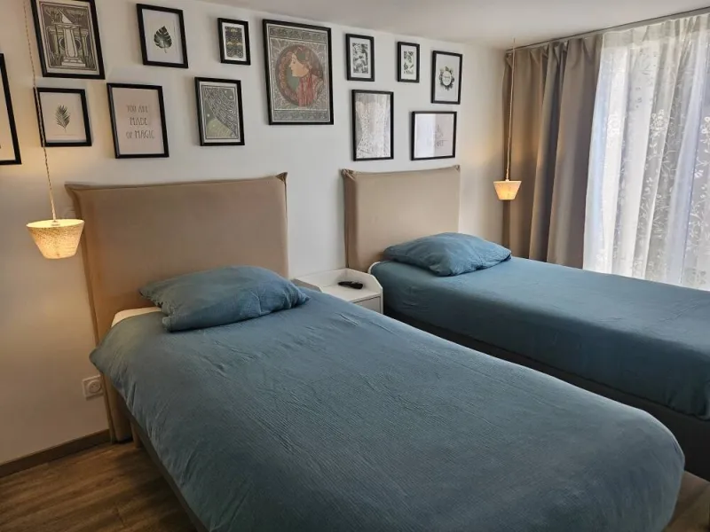 Les commerces sont accessibles à pied.Le gîte est équipé d'un lit en 180 x 200 ou 2 lits en 90 x 200