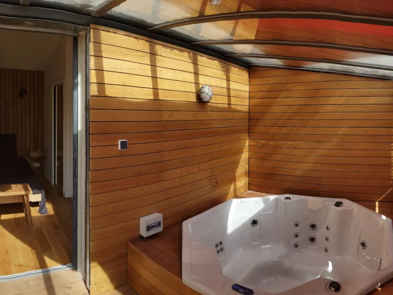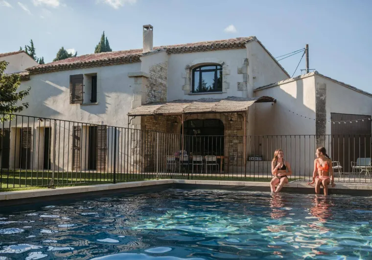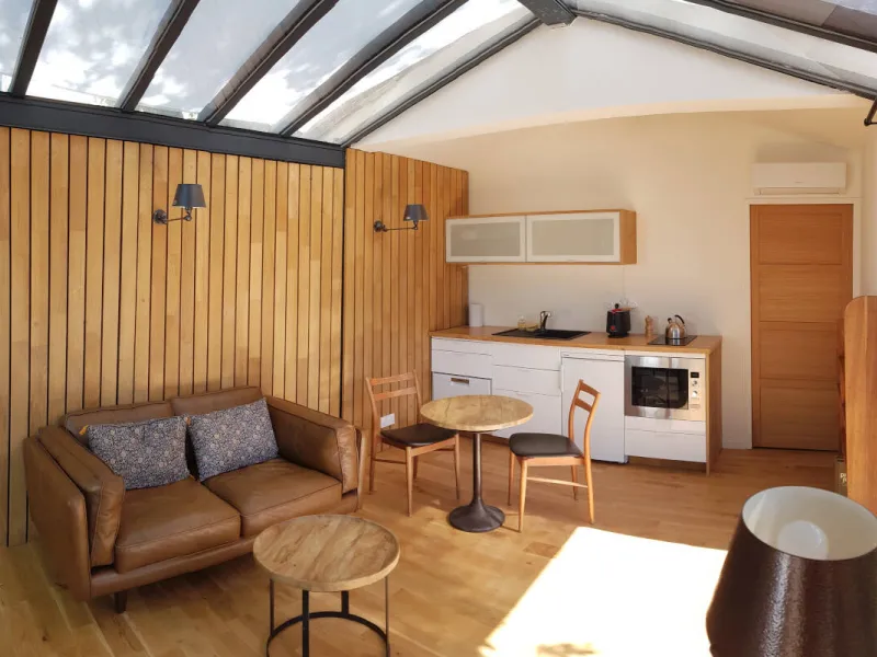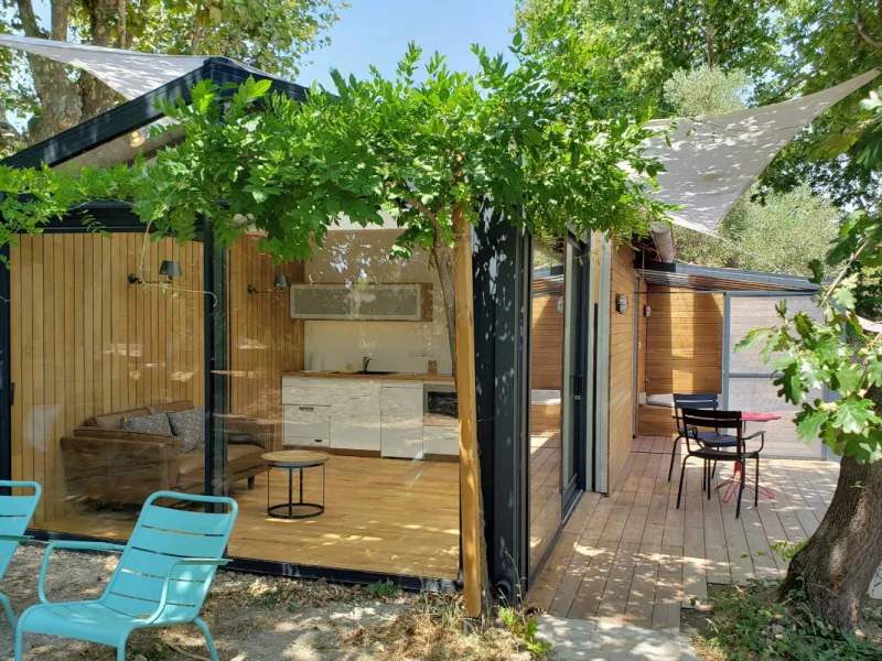 - LE MAZET DES AMANTS, between town and nature (sleeps 2, 1 bedroom) guarantees exceptional relaxation and well-being, with its private spa and veranda opening onto the terrace and wooded garden. Independent and detached, it's a cosy little cocoon with the look of a wooden cabin, and a warm, relaxing atmosphere. Under the veranda, the garden, sky and elements invite themselves inside. In winter, the veranda lets you enjoy the blue sky and the stars. In summer, it's protected by the foliage of a hundred-year-old plane tree and a beautiful oak tree planted at the foot of the terrace. At the end of the terrace is the spa area, sheltered from wind and rain for optimum comfort. It communicates directly with the bedroom. It is equipped with a 5-seater hexagonal spa, semi-buried and entirely clad in wood.