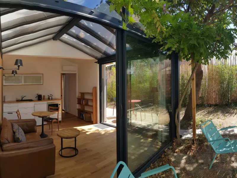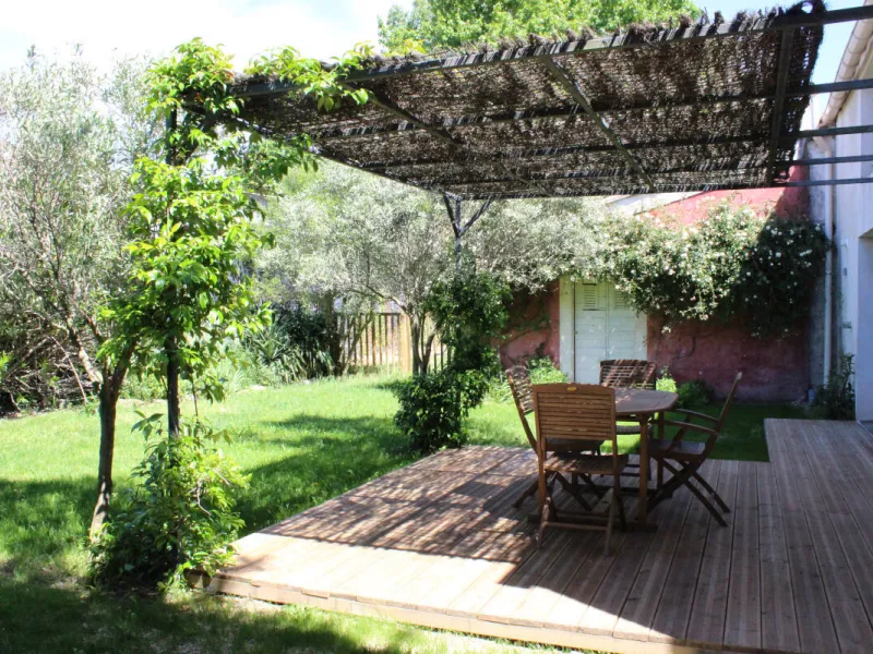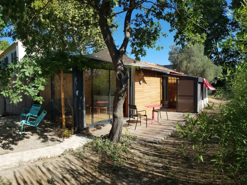Les Airis et le Mazet des Amants is located in a green, cool setting, on a 5,000 m2 wooded plot, 7 minutes by car from the historic center (14 minutes by bike).- LE GITE ECOLOGIQUE LES AIRIS is a charming part of a traditional Provencal farmhouse, guaranteeing natural coolness during the hot summer months. Its 75m2 offer a comfortable and pleasantly furnished space, complemented by a large private garden of 5000M2 with terrace.