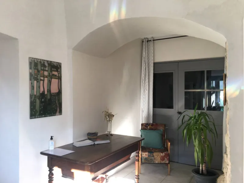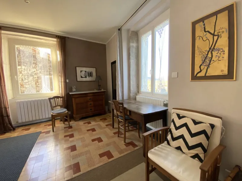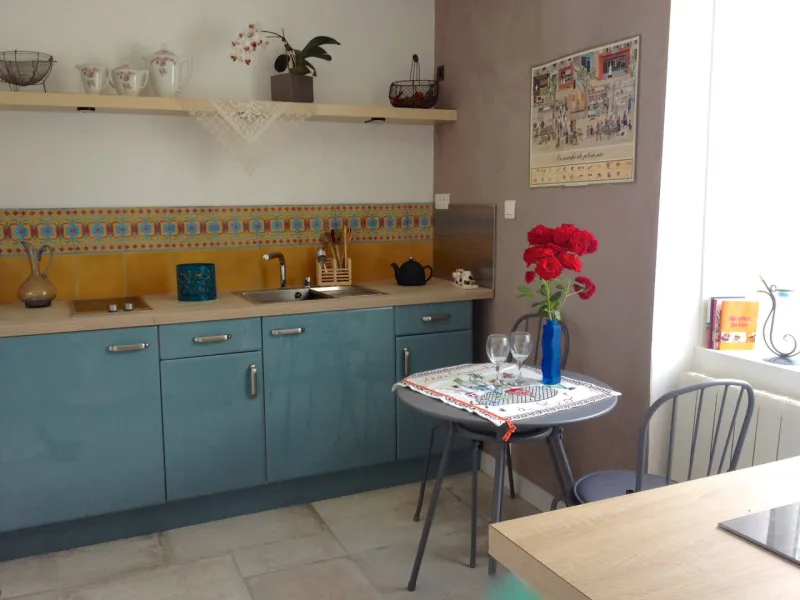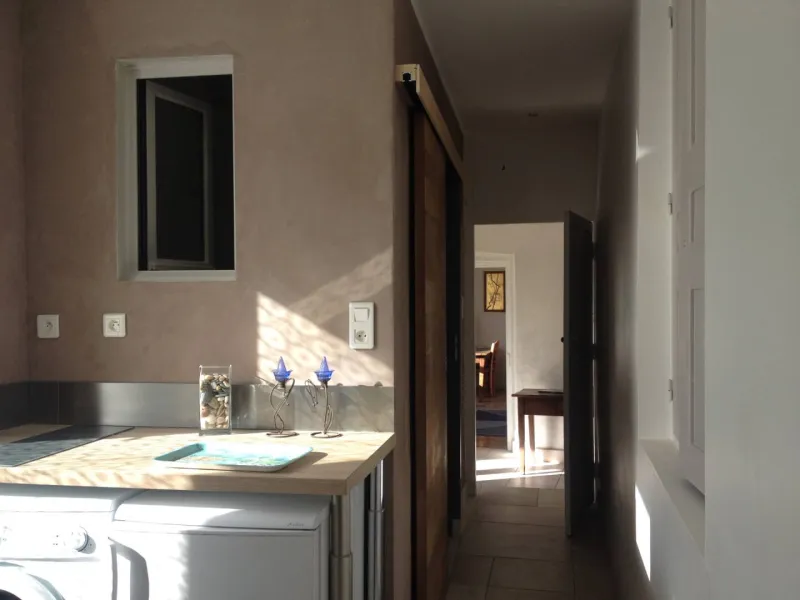 Gîte composed of three independent flats:The largest is on the ground floor with an independent entrance, a hallway leading to a large bedroom, a 20 m² living room with a 160cm bed, a fully equipped kitchen and a bathroom (shower, washbasin and toilet).