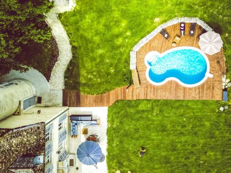 The manor's swimming pool and garden are shared between the two cottages, inviting relaxation and conviviality. Leisure equipment is also available: table tennis table, badminton net, hammocks and large outdoor areas.