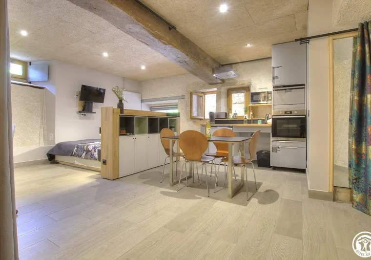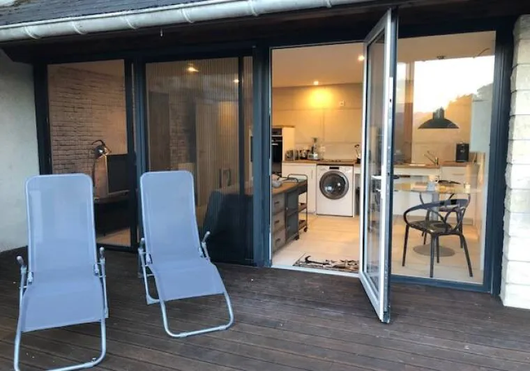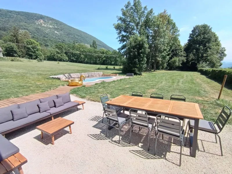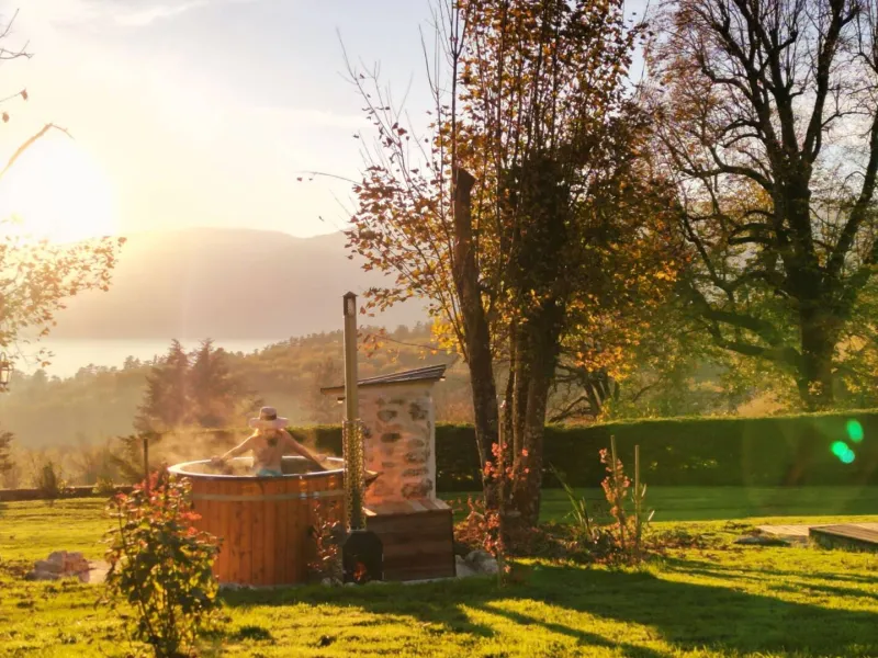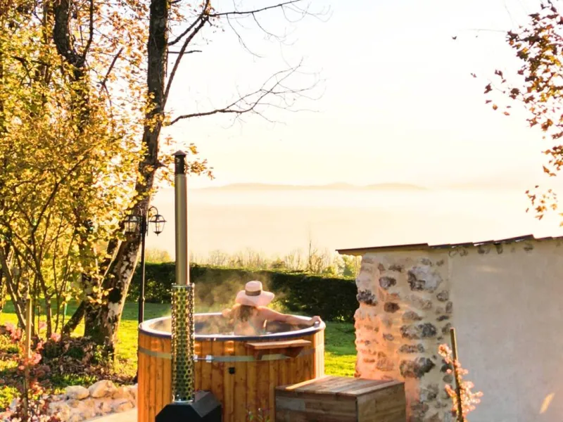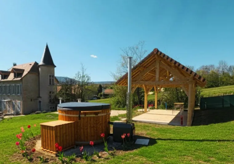 At Manoir du Colombier, enjoy a stay combining relaxation, nature and comfort in the heart of Bugey. This carefully restored character property offers two 4-star holiday cottages in a preserved environment between Geneva, Annecy and Lyon.The first gîte, La Perle du Bugey, located on the ground floor of the manor house, can accommodate up to 6 people. It offers comfortable and elegant living spaces, tasteful décor combining antique furniture and modern amenities, as well as direct access to the outdoors. This gîte has its own private terrace with a dining area and a private Nordic bath, ideal for relaxing in complete privacy.