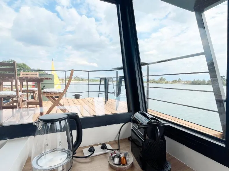 During your stay, you'll benefit from an all-inclusive service (bed linen, towels, cleaning). A 200-space public parking lot is also nearby. You'll be close to many restaurants and tourist attractions, and just a few meters from the Via Rhôna! Discover this exceptional, unusual gîte, a floating haven of peace with a breathtaking view over the town of Tournon. Moored on the left bank of the Rhône, in Tain l'Hermitage, this unusual holiday immerses you in a unique setting!
