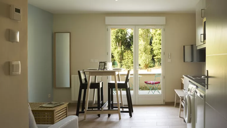 Ideally located 2 minutes from the hospital and 10 minutes from Vienne by car or public transport, this studio flat is the ideal place to recharge your batteries, whether during a business trip or for a holiday. The building has bay windows equipped with roller blinds and is filled with natural light. Green patios with shade from the blinds provide a great sense of outdoor well-being with a south-western exposure.