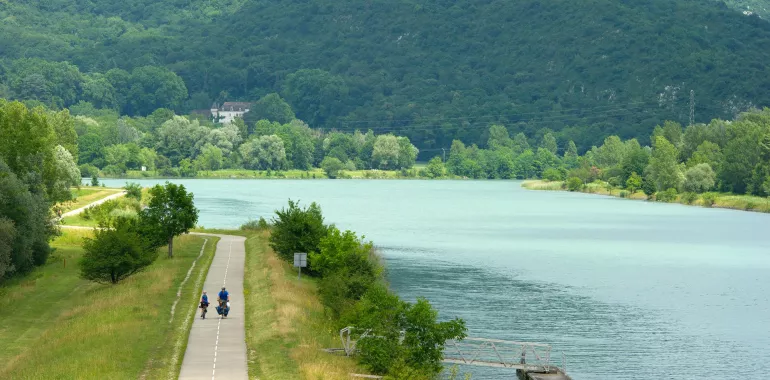 Lagnieu <> La Balme-les-Grottes: along grassy tracks that you join by turning right after crossing Lagnieu’s bridge (hybrid bike required).
