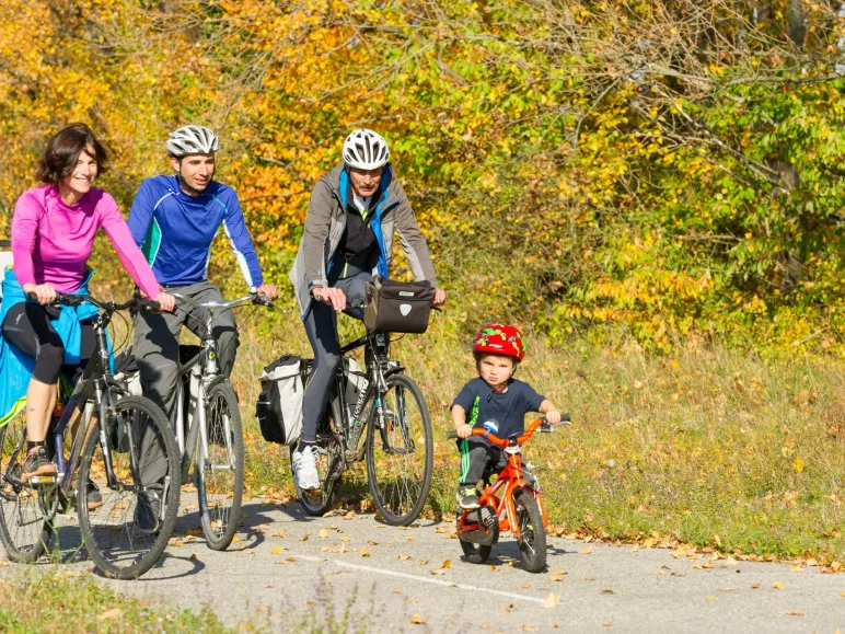 Respect the highway code. Remember to cycle on the right-hand side, to look straight ahead and anticipate, and to stop at all junctions. - It is possible to rent trailers or a third wheel for a trailer.