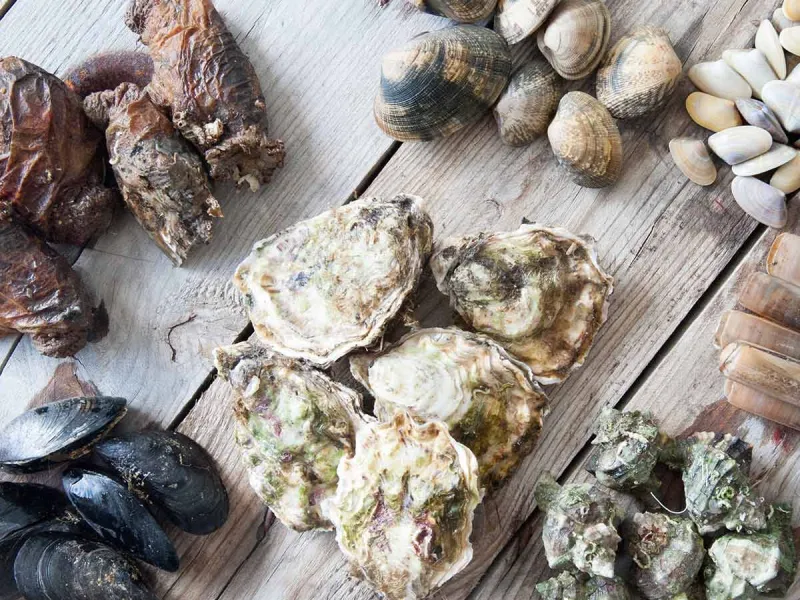 Shellfish from natural collection methods, certified organic.
