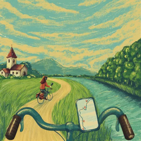 “La Tête au-dessus du guidon” est un podcast géolocalisé accessible via l’application Karacal, spécialement conçu le long de l’itinéraire ViaRhôna.