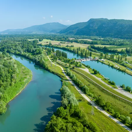 Pour la partie en amont de Lyon, vous cheminez au travers des collines du pays genevois, des contreforts du Jura, des plaines et collines du Dauphiné, des parcs urbains de Lyon.