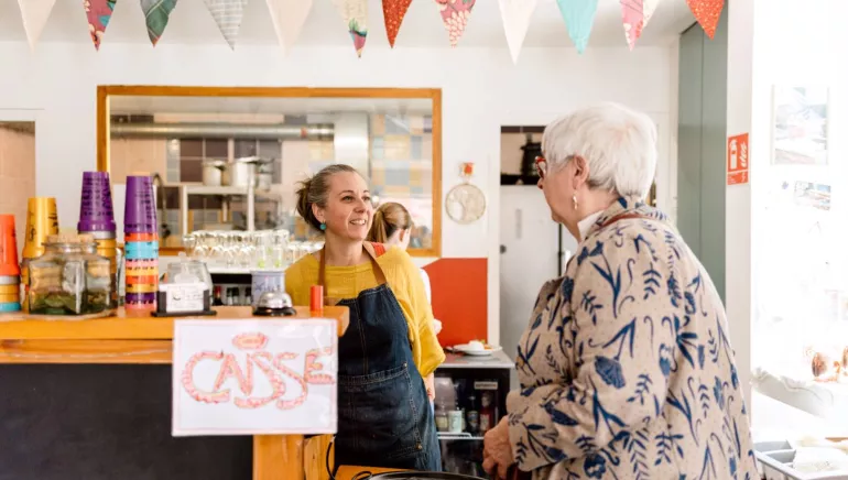 Notre café/restaurant sert des produits frais et inventifs de 8h à 18h, du lundi au vendredi. Nous vous accueillons pour le petit déjeuner, le repas du midi et le goûter. Nous disposons d'une salle de restaurant et d'une terrasse en plein centre du village et du centre historique de l'Arche de Condrieu. Une place piétonne derrière l'établissement est sécurisée, un parking vélo se trouve en face. Un coin jeux permet de détendre des repas de famille et anime les goûters.