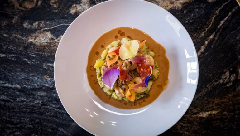 Retrouvez des recettes traditionnelles préparées avec les produits du Midi, dans un cadre chaleureux et coloré. Dînez dans la salle de restaurant ou profitez, en saison, de la terrasse-patio, un espace convivial décoré d’un trompe-l'œil inspiré par la Provence.