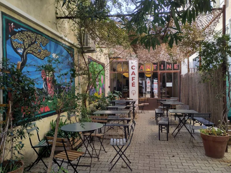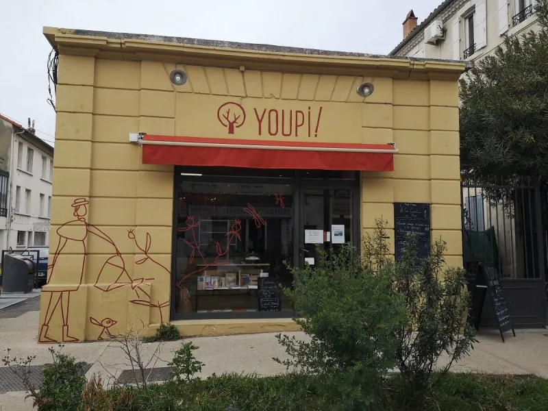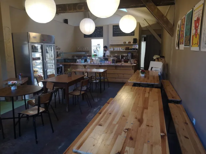 The site takes the form of a family cooperative (SCOP). It is organized around three poles:- The café-cantine area is a convivial meeting place for all, with a children's corner featuring adapted chairs and cutlery, and a changing table for the comfort of families. You can enjoy pastries at any time and simple vegetarian cuisine at lunchtime, entirely home-made using seasonal, local and organic produce wherever possible.
