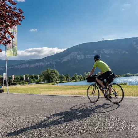 A beautiful stretch of the ViaRhôna® designed for experienced cyclists! From Seyssel to Lyon, the wild Rhône River majestically winds its way through the landscapes of Savoie. Starting from Seyssel, you'll enter the breathtaking Alps with its mountains, lakes, gorges, valleys, villages, and waterfalls. The trip ends with a gentle ride into the urban setting of Lyon. Between mountains and valleys, you'll cycle along the Rhône from the Bugey Mountains to the capital of gastronomy.