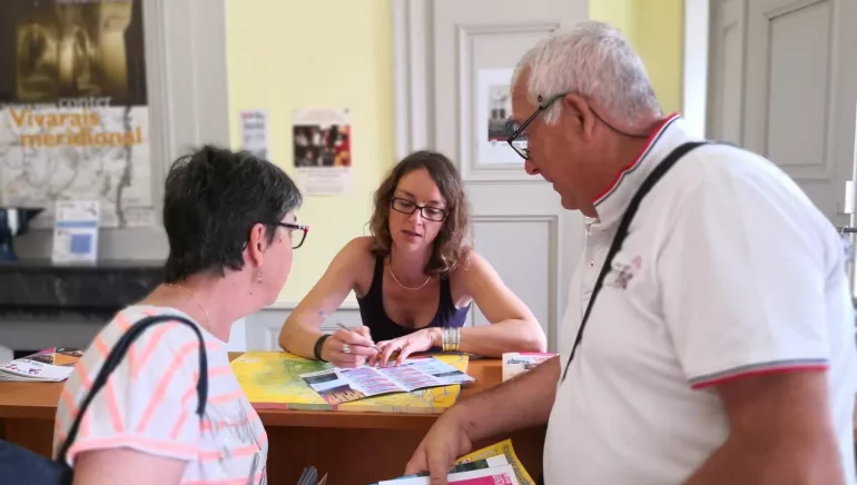 Notre service réceptif peut organiser votre séjour clés en main. Nous proposons des visites commentées de la ville et autres prestations en plusieurs langues, toute l'année sur rendez-vous pour les groupes, l'été pour les individuels et au mois de septembre pour les Journées du Patrimoine. Vous trouverez en vente dans nos locaux les produits du terroir, ouvrages sur le patrimoine ... ainsi que des billets pour certains spectacles organisés sur la commune de Viviers et divers sites touristiques.